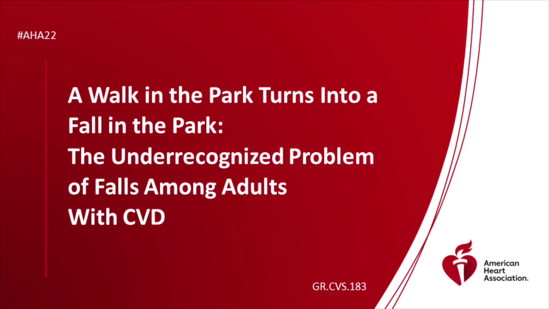A Walk in the Park Turns Into a Fall in the Park: The Underrecognized Problem of Falls Among Adults With CVD - AHA OnDemand Skip to main content