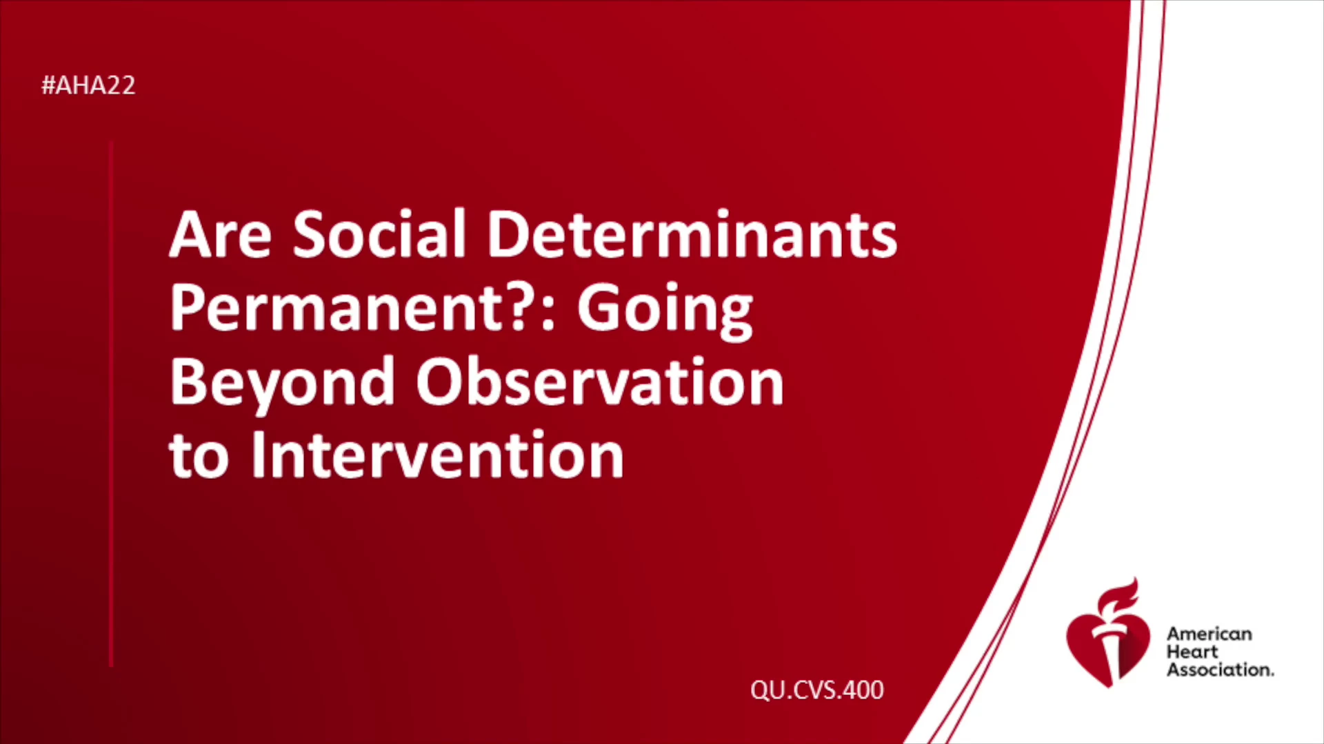 Are Social Determinants Permanent Going Beyond Observation to Intervention - AHA OnDemand Skip to main content