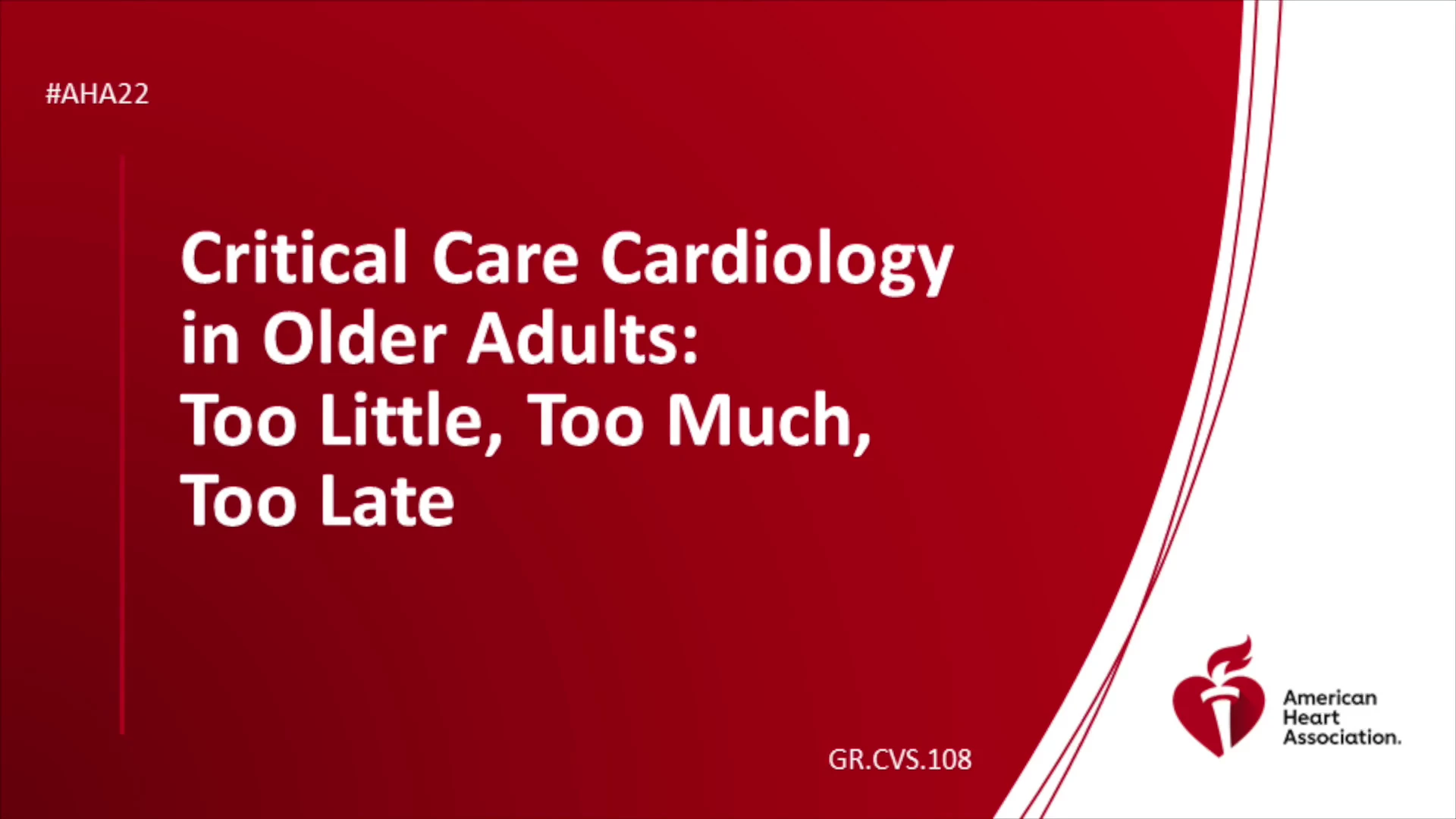 Critical Care Cardiology in Older Adults: Too Little, Too Much, Too Late - AHA OnDemand Skip to main content