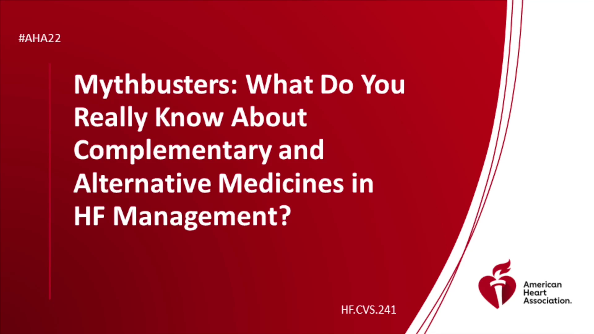 Mythbusters: What Do You Really Know About Complementary and Alternative Medicines in HF Management? - AHA OnDemand Skip to main content