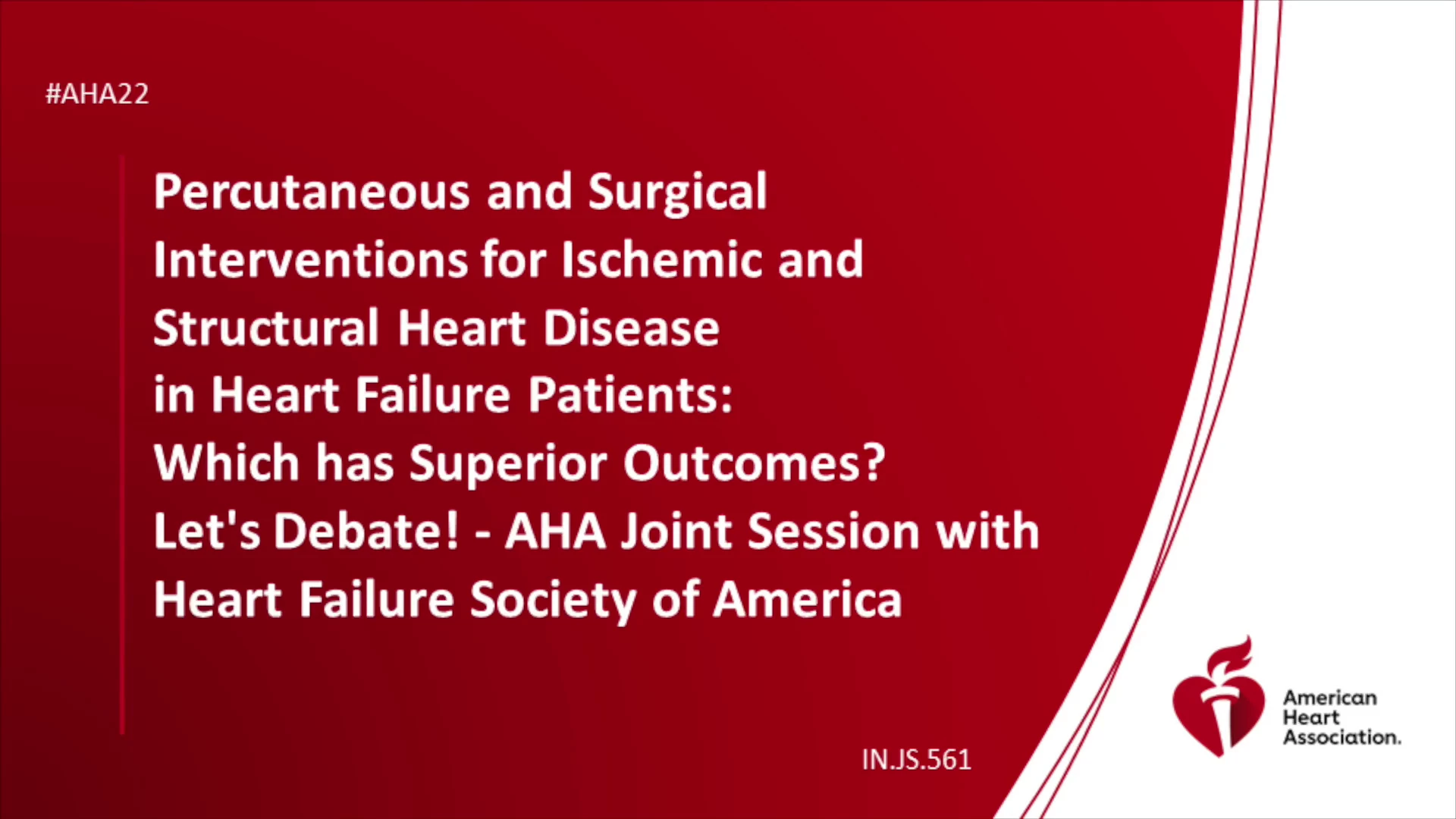Percutaneous and Surgical Interventions for Ischemic and Structural Heart Disease in Heart Failure Patients: Which has Superior Outcomes Let's Debate! - AHA Joint Session with Heart Failure Society of America - AHA OnDemand Skip to main content